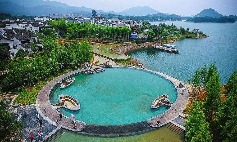位于千島湖姜家鎮。施工內容包括古建筑修繕、仿古建筑營造、水景水系構建等。